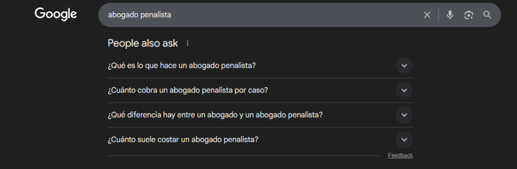 Una forma muy sencilla es buscar en Google los servicios que ofreces. Empieza escribiendo, por ejemplo, “abogado penalista” y observa qué sugiere el propio buscador. Ahí ya tienes pistas de lo que la gente busca de verdad.
