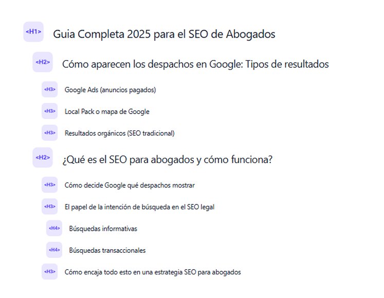 Esto no solo ayuda al SEO, sino que además posiciona a tu despacho como especialista, no como un abogado genérico más.