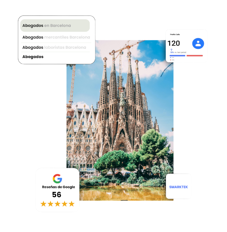 Aparece en Google Maps cuando alguien busca “abogado en Barcelona”, no después de que ya haya contratado a otro. Optimizamos tu Google Business Profile para que tu despacho gane visibilidad en zonas como Eixample, Gràcia, Sarrià-Sant Gervasi, Poblenou, Les Corts…
